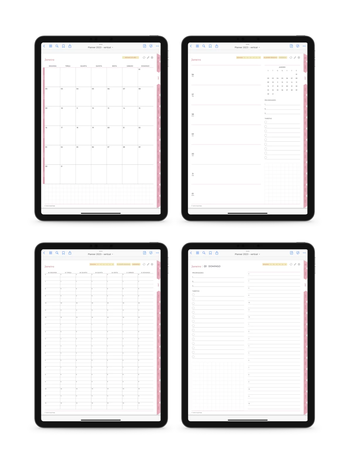 O Planner Digital Rosa – 2023 foi desenhado especialmente para você. Projetado para te ajudar a organizar melhor o seus dias para que você possa ter tempo livre para fazer as coisas que você ama.