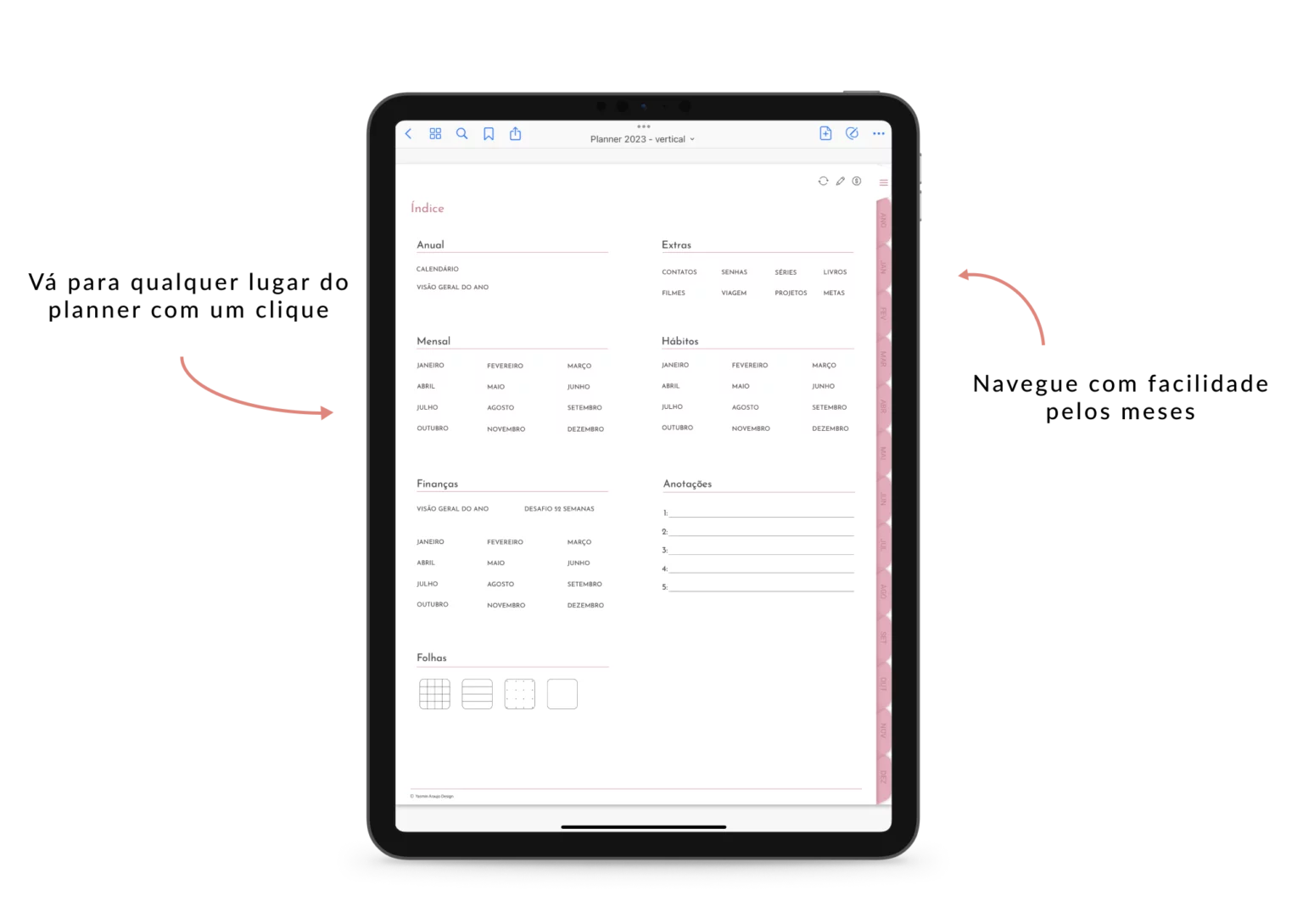 O Planner Digital Rosa – 2023 possui links que te levam para todos os lugares do planner facilitando a utilização de todos os recursos.